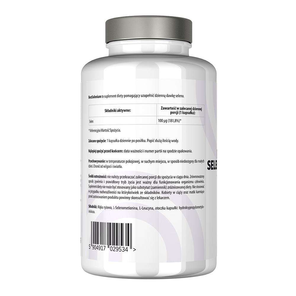 BestSelenium is a dietary supplement designed to support overall health by providing a highly bioavailable form of selenium – L-selenomethionine. This organic form of selenium is effectively incorporated into selenoproteins, essential compounds that protect cells from oxidative stress, support immune function, maintain thyroid health, and promote the proper condition of hair, nails, and skin. Additionally, selenium contributes to male fertility and the normal functioning of the nervous system.